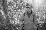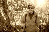 Outdoor shot of attractive young woman with backpack standing in