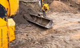 excavator on a construction site. Excavator digging earth for earthworks and construction. Heavy equipment for earthworks and construction