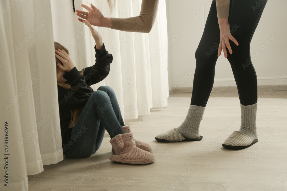 The bullying parent. Angry mother threatening and yelling to child. Harmful parenting method.