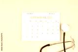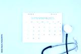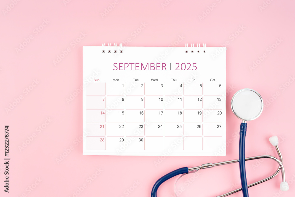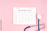 September 2025 desk calendar and stethoscope, Medical appointment concept.