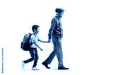 Grandfather walking grandson to school
