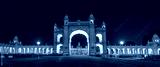 Historic Mysore Maharaja palace illuminated in the night time .