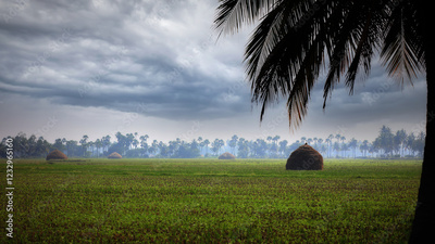 Misty Paddy fields landscape in Andhra pradesh ,India
