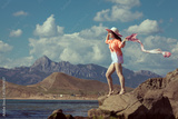 Happy woman enjoying beach relaxing joyful in summer by tropical