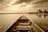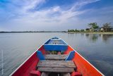 On long tail boat with horizon lines,Thailand
