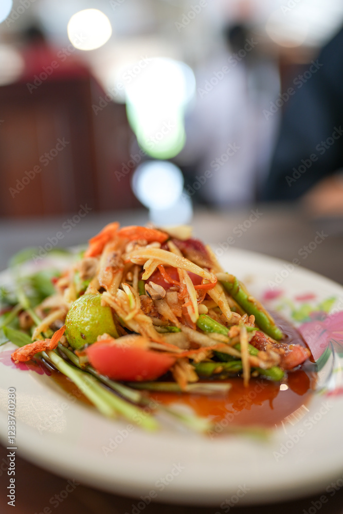 Delicious Thai papaya salad Original spicy thai food is the most popular