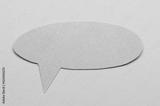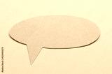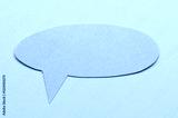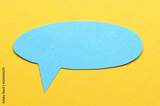 Blue cut out blank paper speech bubble of round shape with copy space for text on yellow background, flat lay top view conceptual backdrop
