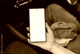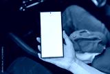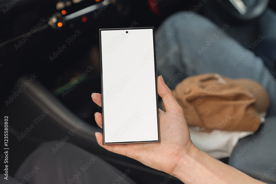 Woman sitting in a private car and hand holding smartphone mockup of blank screen, Take your screen to put on advertising