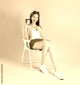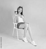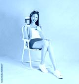 Happy smiling young Asian woman sit in deckchair hold thai passport and credit card in blue background. Tourist travel trip journey concept
