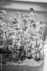 Vibrant green sprouts stretch eagerly toward the sun, showcasing their delicate stems and tender leaves as they grow in rich soil. This lively scene depicts the beauty of indoor gardening.
