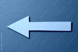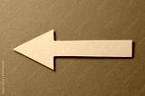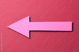 Pink cut out blank paper cardboard arrow direction sign with copy space for text on red background, flat lay top view pointing symbol conceptual message backdrop