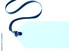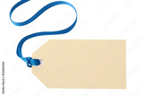 Gift tag or label plain with blue ribbon for birthday or christmas gift isolated on white background photo