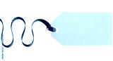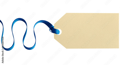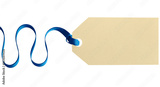 Gift tag or label plain horizontal with blue ribbon for birthday or christmas gift isolated on white background photo