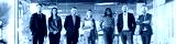 Group of business multiethnic people men and women looking cheerful at camera and smiling standing in a row in modern office. Portrait of diverse company employees. Team work concept. Banner.
