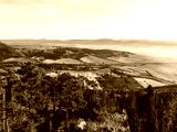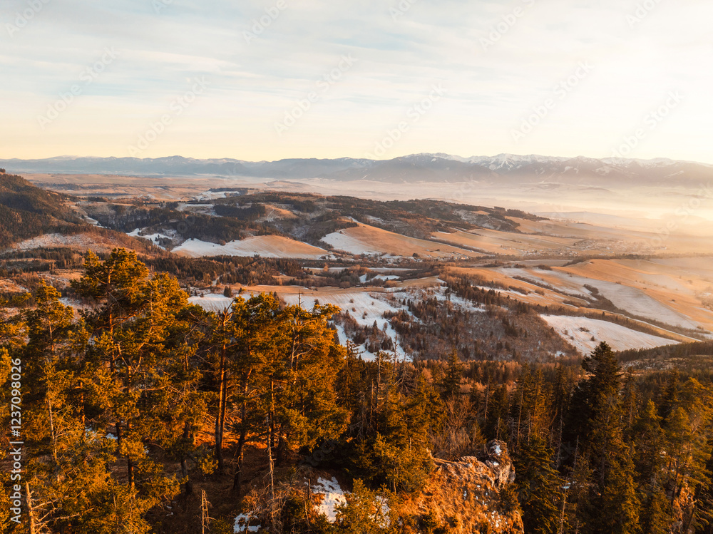 Sunset over Liptov region in the backround with Liptovska mara lake and Tatras mountains around. Liptovsky mikulas landspace, slovakia.