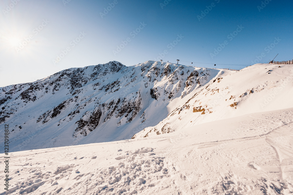 Winter hiking to Chopok in Low Tatras National park is full of beautiful views. Slovakia mountains landscape.