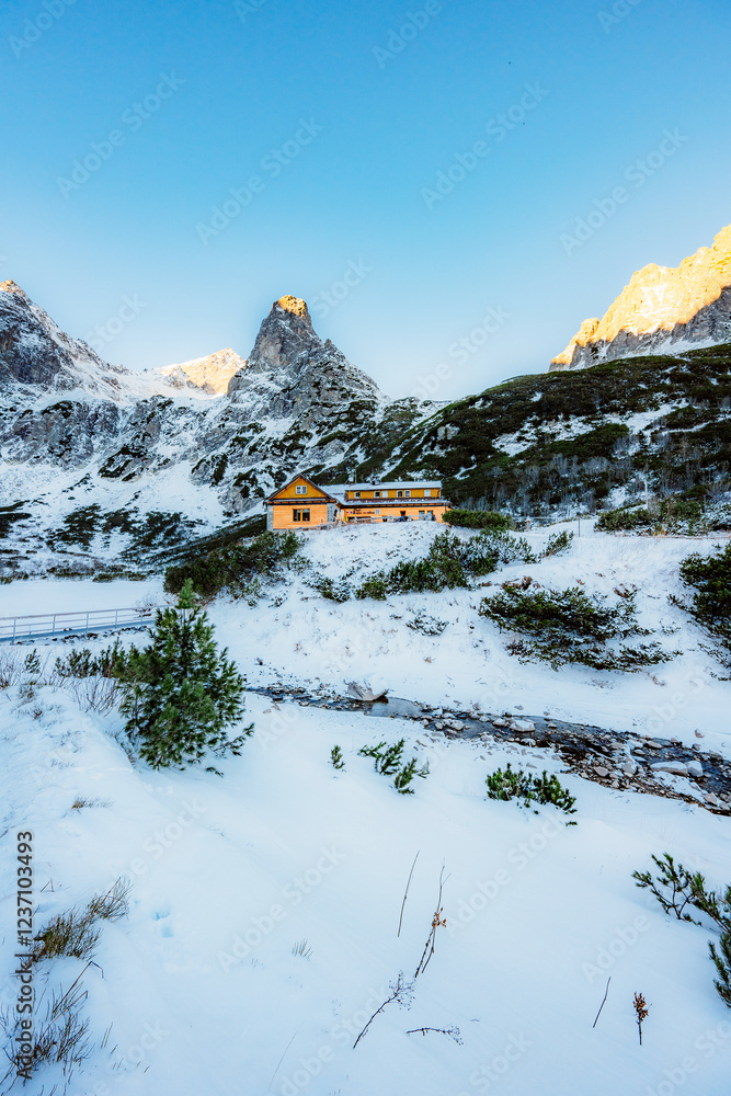 Hike on the green lake in the High Tatras in winter. Zelene pleso