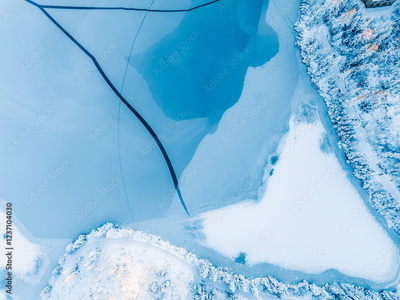 Frozen winter mountain lake Strbske pleso. Strbske lake with view of the High Tatras National Park, Slovakia