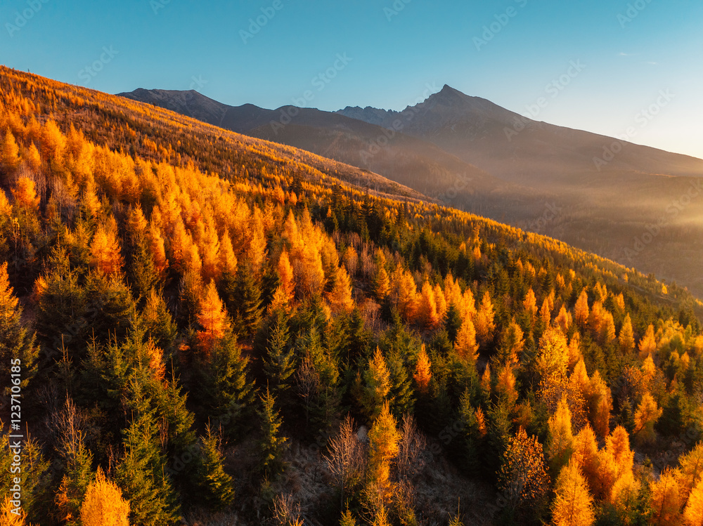Sunset over Liptov region with and High Tatras mountains around. Krivan landspace, slovakia. Podbanske.