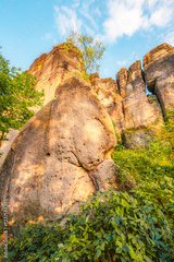 Sunset of rock castle Schauenstein, saunstejn from 14-th century, Bohemian Switzerland, Czech Republic