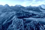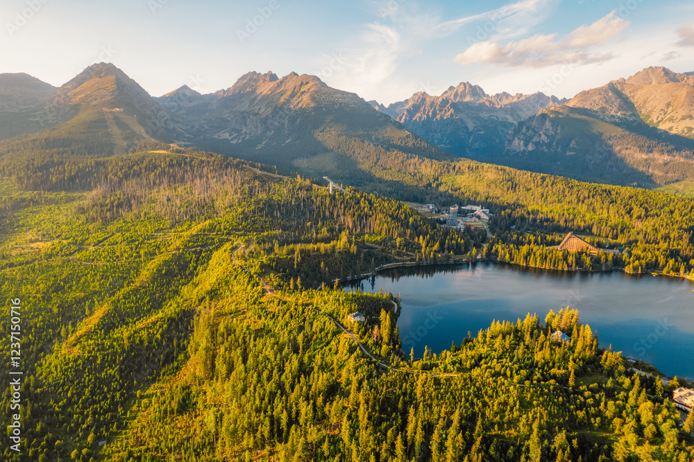 Mountain lake Strbske pleso. Strbske lake with view of the High Tatras National Park, Slovakia
