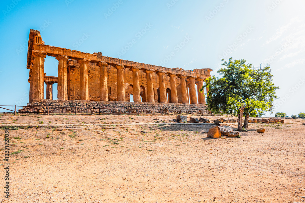 The greek temple of Temple of Concordia in the Valley of the Temples, Agrigento, Sicily.