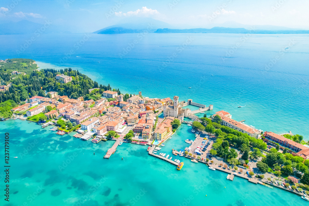 Rocca Scaligera Castle in Sirmione Lake Garda, Italy. Lago di garda