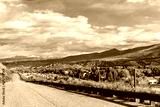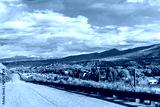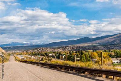 Eagle, Gypsum, Colorado, USA interstate highway 70 road with cars driving in autumn fall season canyon cliff mountains covered in snow