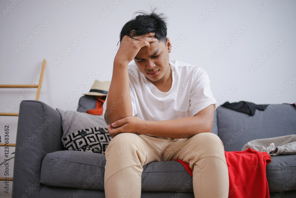 Young Man Feeling Stress Because Of Messy Clothes At The Room