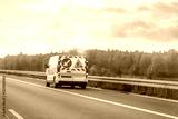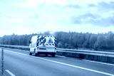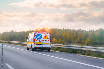 Maintenance van with hazard lights on road
