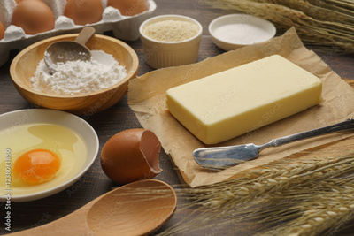 バターと小麦粉と生卵|料理・お菓子作り イメージ