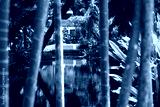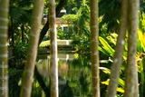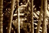 Close Up Bamboo Thicket on Blurred Background with Lake and Villa