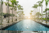 fountain with trees around at central square,Hong Kong,China.