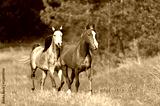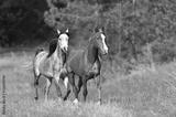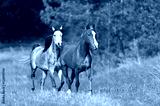 Two arabian horses run in spring landscape
