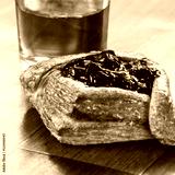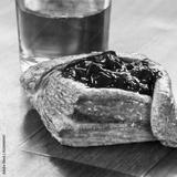 pastries, buns, custard cake, a glass of apple juice on the table. Close-up