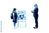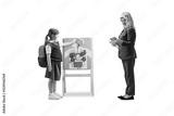 Schoolgirl pointing at a board with human organs in front of a teacher
