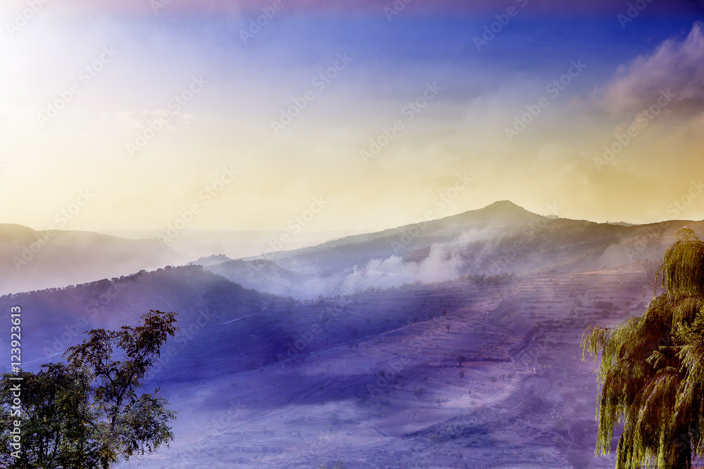 Abstract nature mountain landscape.Travel and idyllic scenic.Mountain landscape detail background.Sunrise and nature scenery.