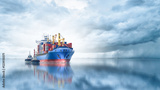 Logistics and transportation of International Container Cargo ship with tugboat in the ocean, Freight Transportation, Shipping