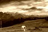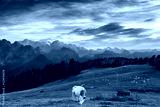 cow grazing on alpine meadow