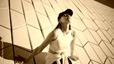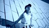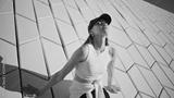 Athletic woman leaning wall modern textured building feeling calmness closeup.