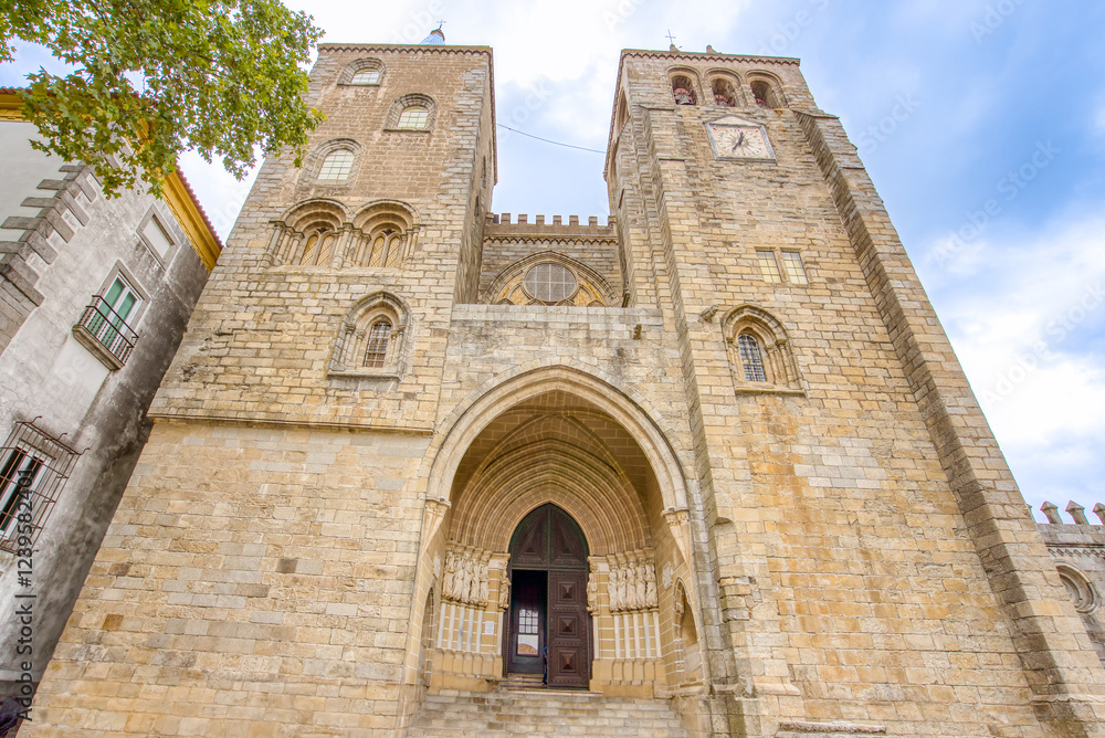 Exterior Facade of Evora Cathedral in Evora, Portugal