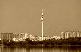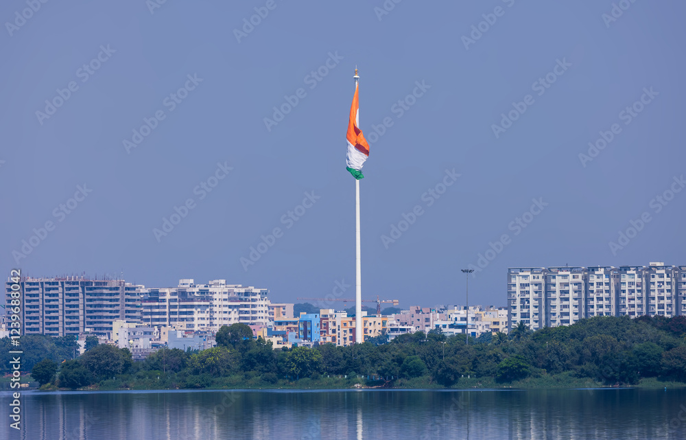 Landmark of tallest post with Indian flag in Hyderabad, India.