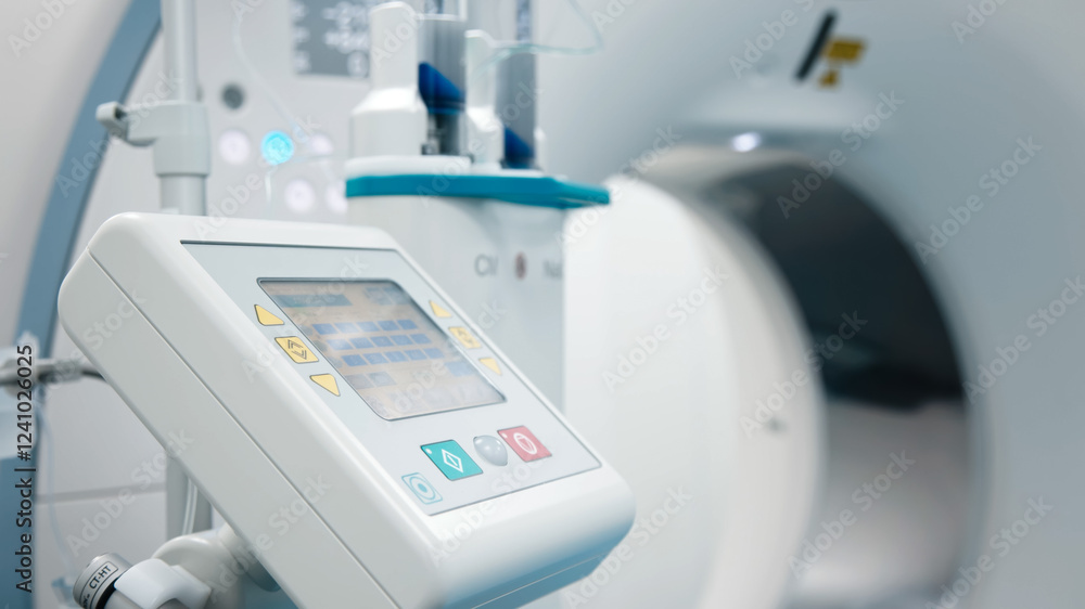 Modern CT scanner or MRI machine in a hospital radiology center. Diagnostic equipment in a medical lab.