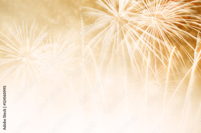 Abstract Gold Fireworks New Year and copy space. Background holiday.