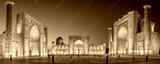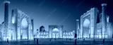 Panorama of the Registan by night, Samarkand, Uzbekistan