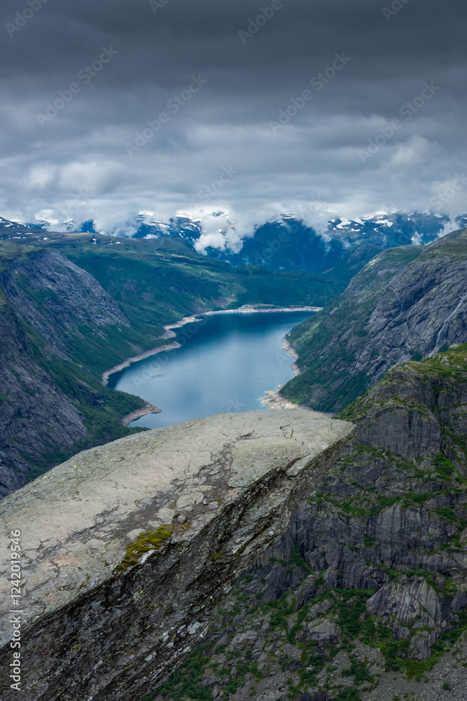 The amazing Trolltunga scenic spot, famous rock formation in Norway