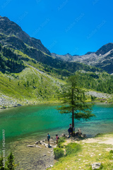 Morgex, Italy, 10 July 2022: The beautiful crystal clear water of the Arpy Lake in Aosta Valley