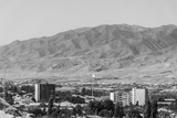 Cityscape of Panjakent with the Zerafshan mountains on the background, city in Tajikistan