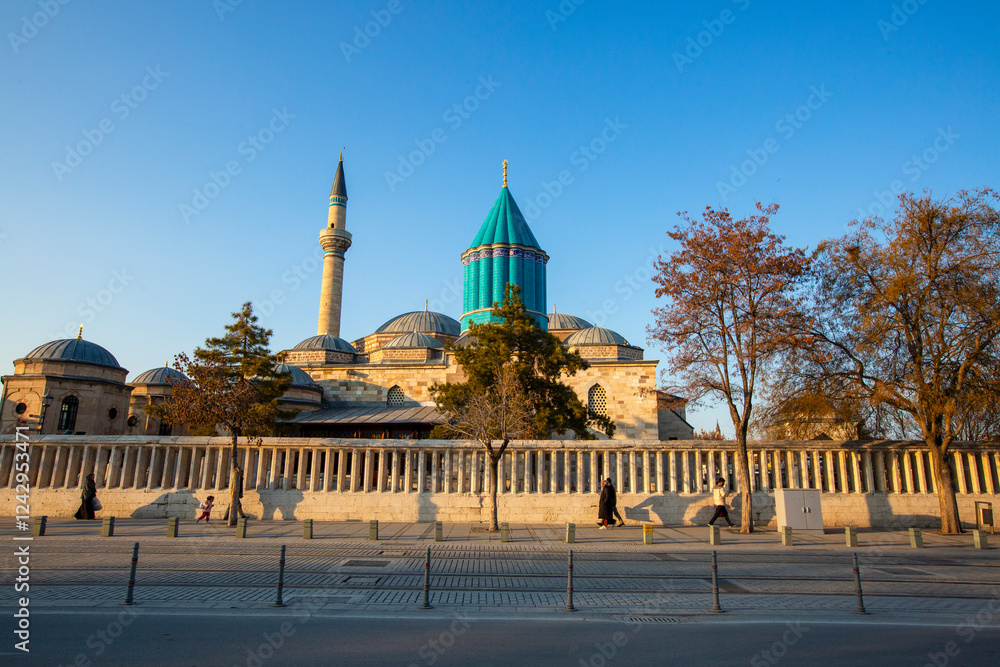 Konya, Turkey - February 02, 2025: Mevlana Museum and Mevlana Tomb in Konya Turkey