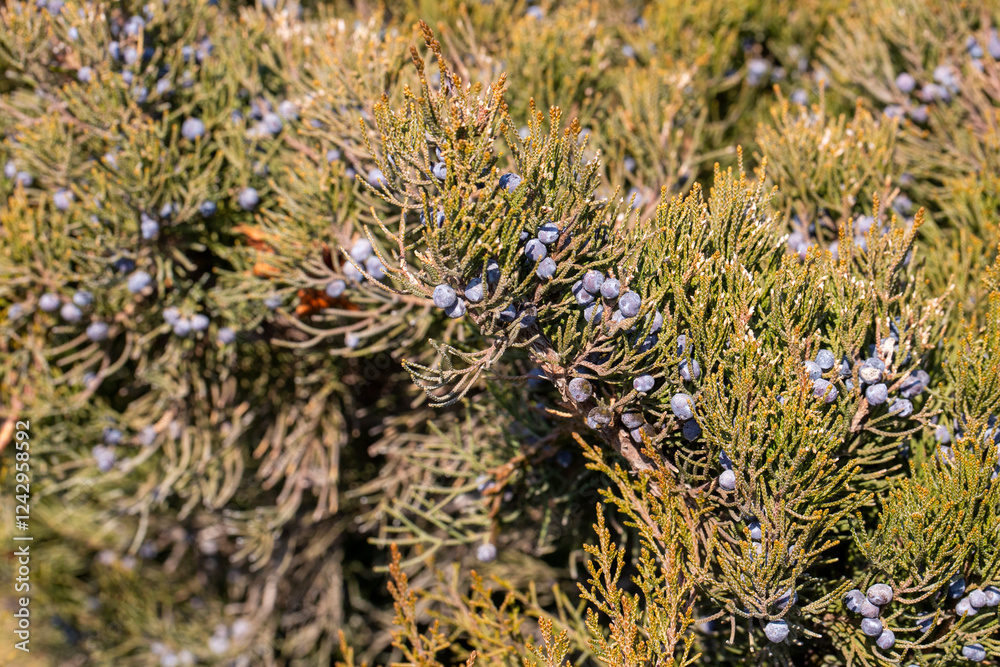 Juniperus excelsa, commonly called the Greek Juniper. This blue berries are used as spices and in herbal medicine.